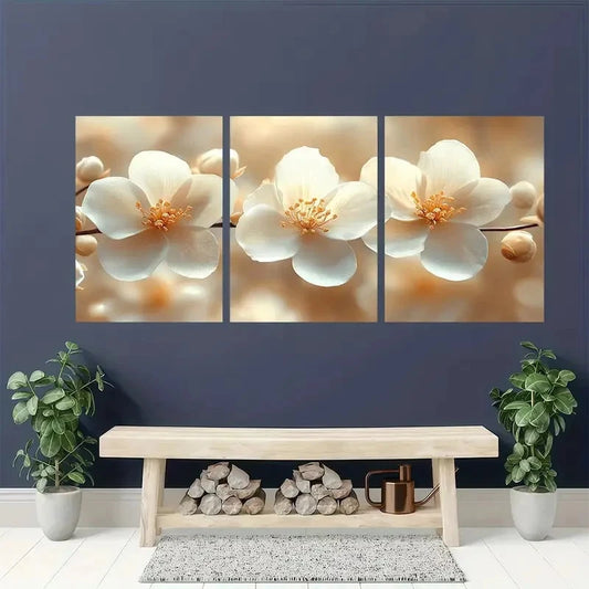 3pcs Serene Elegant White Flower Prints Metal Print Ready to Hang Art