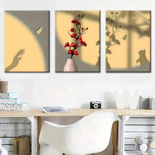 3pcs Light & Shadow Floral Wall Decor Prints Metal Print Ready to Hang Art