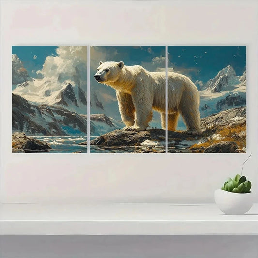 3pcs Vintage Polar Bear Snowy Mountains Metal Print Ready to Hang Art