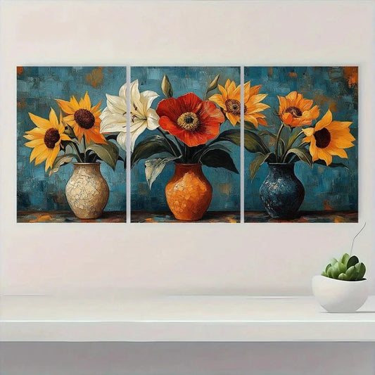 3pcs Vibrant Red Yellow & White Sunflowers Metal Print Ready to Hang Art