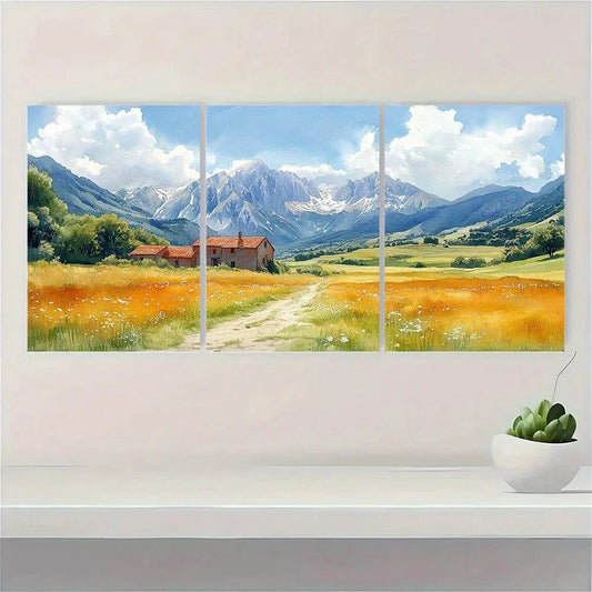 3pcs Golden Wheat Fields Rolling Hills & Mountain Metal Print Ready to Hang Art