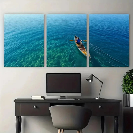 3pcs Paper Beach Shore Boat Perfect Wall Art Set Canvas Framed 40x60cm - High Quality Print 100% Australian Made Wall Canvas Ready to Hang