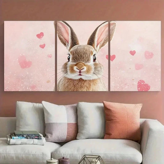 3pcs Self Love Retro Bunny Pink Illustration Metal Print Ready to Hang Art