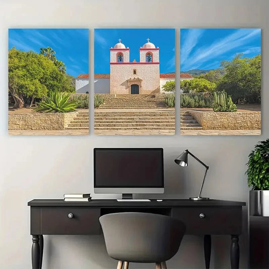 3pcs Lovers Santa Barbara Mission Perfect Wall Art Set Canvas Framed 40x60cm - High Quality Print 100% Australian Made Wall Canvas Ready to Hang