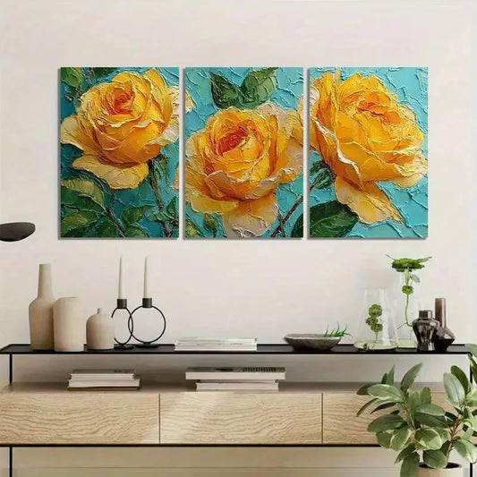 3pcs High-Definition Yellow Rose Poster Metal Print Ready to Hang Art