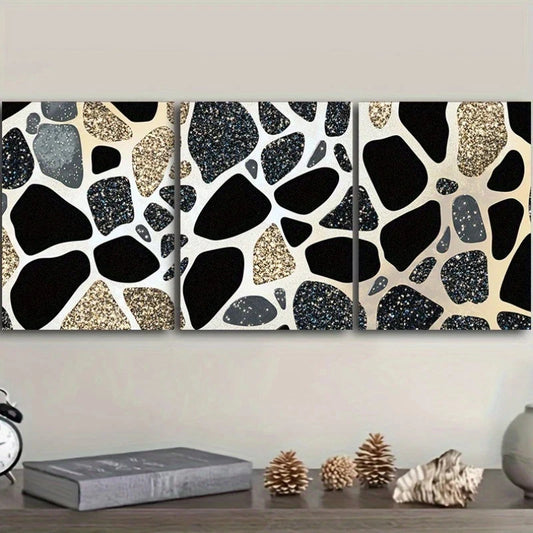 3pcs Featuring a Black Leopard Pattern Metal Print Ready to Hang Art