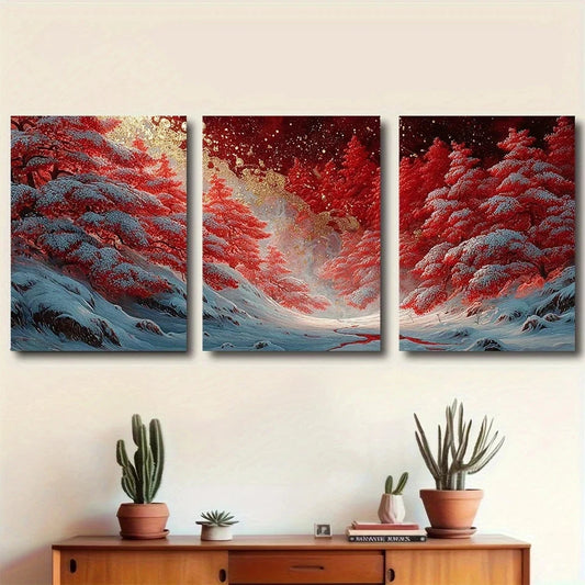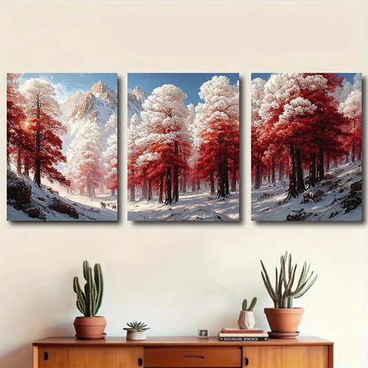 3pcs Textured Nordic Scene Snow Surface Metal Print Ready to Hang Art