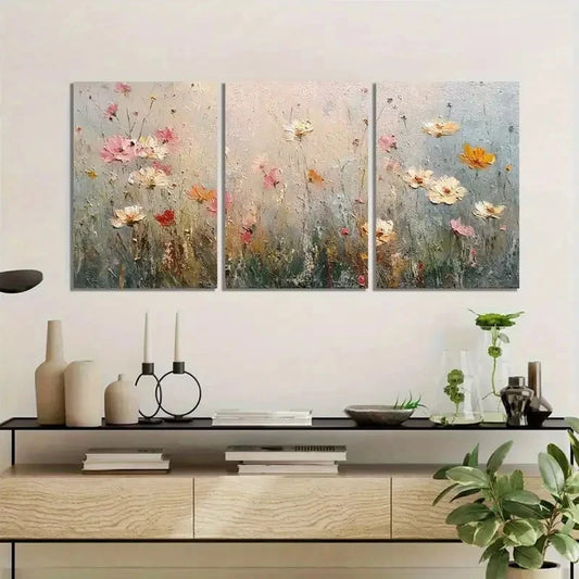 3pcs Vintage Wildflower Meadow in Pastel Metal Print Ready to Hang Art