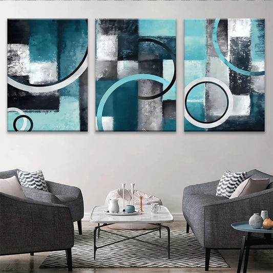 3pcs Abstract Geometric Green Blue Metal Print Ready to Hang Art