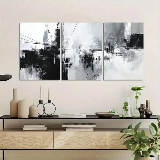 3pcs Black & White Wire Abstract Art Posters Metal Print Ready to Hang Art