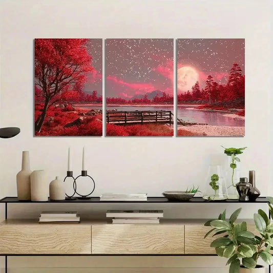 3pcs Cinematic Night Sky & Lake Painting Metal Print Ready to Hang Art
