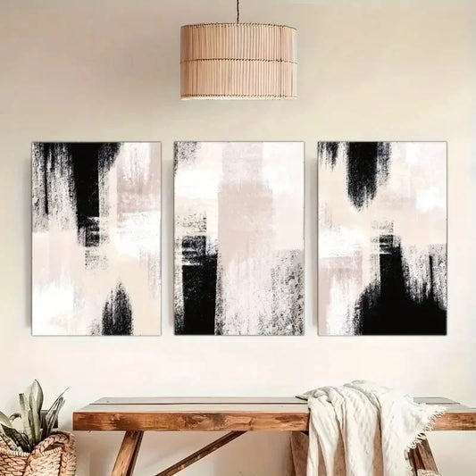 3pcs Featuring Abstract Art in Black And Beige Metal Print Ready to Hang Art