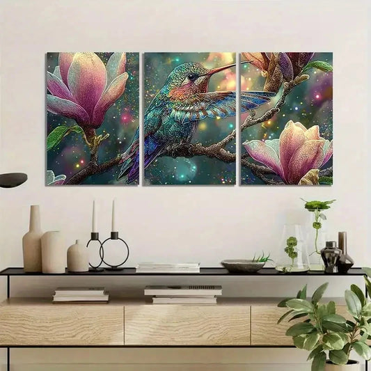 3pcs Vibrant Hummingbird & Magical Effects Metal Print Ready to Hang Art