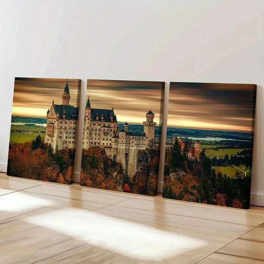 3pcs Mountains Forests and Castle Wall Art Set Canvas Framed 40x60cm - High Quality Print 100% Australian Made Wall Canvas Ready to Hang
