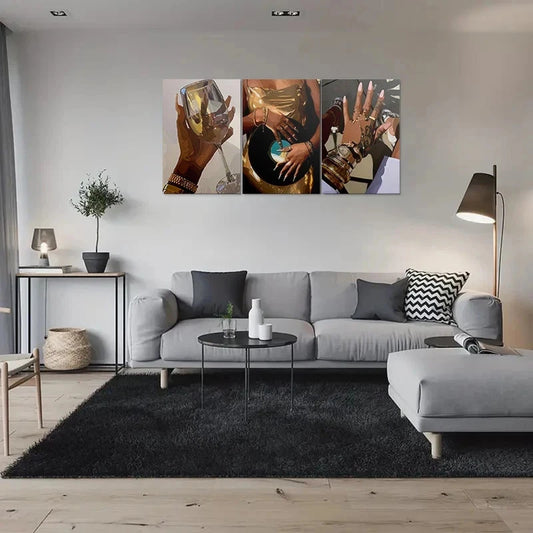 3pcs Golden Elegance Themed Elegant Metal Print Ready to Hang Art