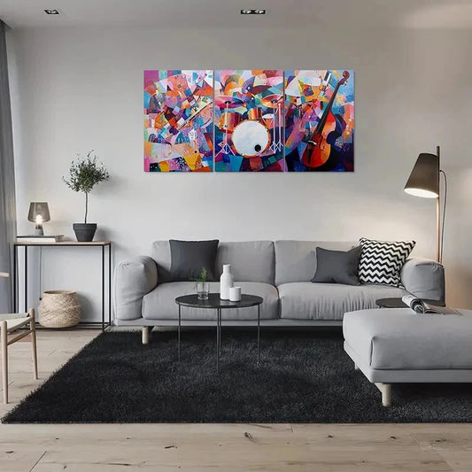 3pcs Vibrant Abstract Musical Instruments Metal Print Ready to Hang Art