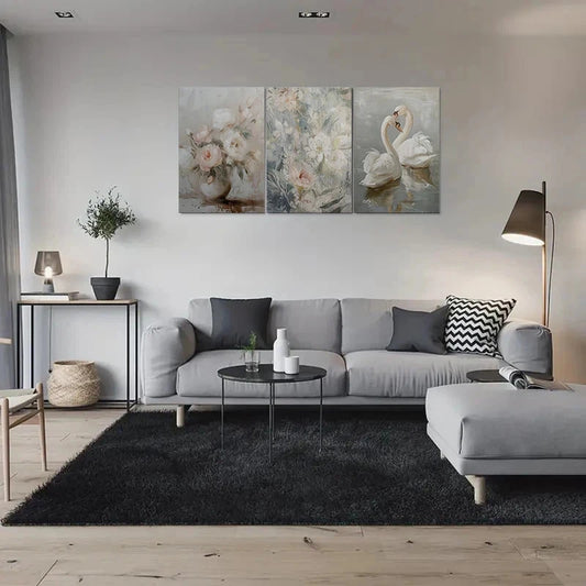 3pcs Romantic Swan and Floral Metal Print Ready to Hang Art