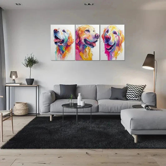 3pcs Colorful Abstract Golden Retriever Metal Print Ready to Hang Art