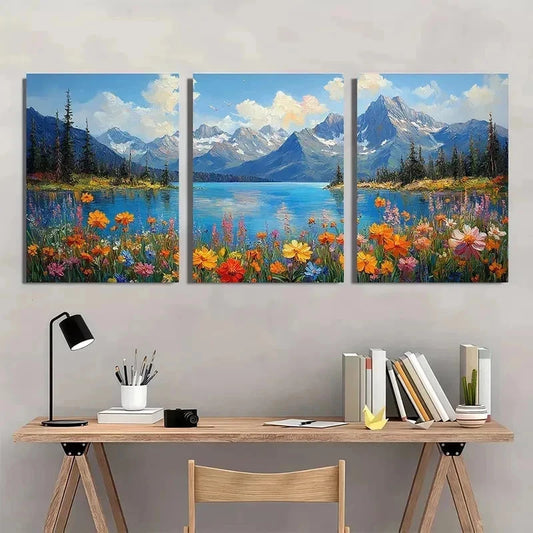 3pcs Mountain Scenery Colorful Flower Perfect Wall Art Set Canvas Framed 40x60cm - High Quality Print 100% Australian Made Wall Canvas Ready to Hang