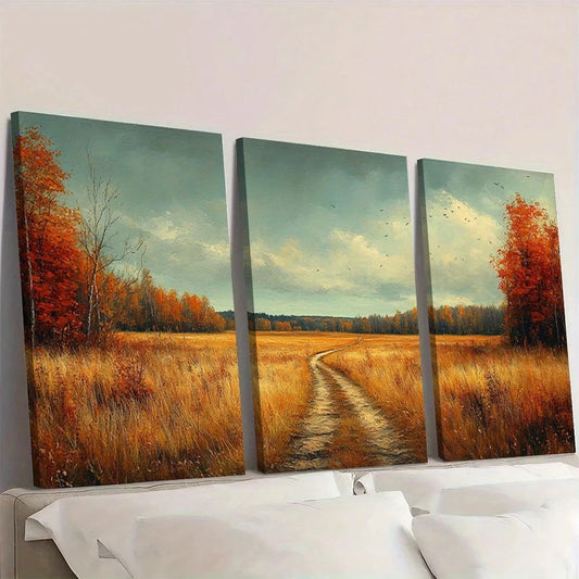 3pcs Vintage Autumn Nature Color Palette Wall Art Set Canvas Framed 60x90cm - High Quality Print 100% Australian Made Wall Canvas Ready to Hang