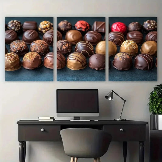 3pcs Luxurious Chocolates Candies Décor Perfect Wall Art Set Canvas Framed 60x90cm - High Quality Print 100% Australian Made Wall Canvas Ready to Hang