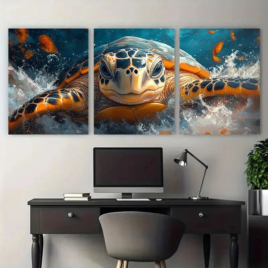 3pcs Vibrant Turtle & Ocean Wave Design Perfect Wall Art Set Canvas Framed 60x90cm - High Quality Print 100% Australian Made Wall Canvas Ready to Hang