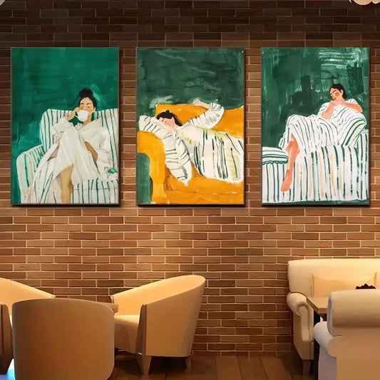 3pcs Art Suit-Bright Women's Rest Print Metal Print Ready to Hang Art