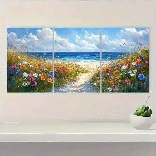 3pcs Beach with Waves and Sand Under a Beautiful Metal Print Ready to Hang Art