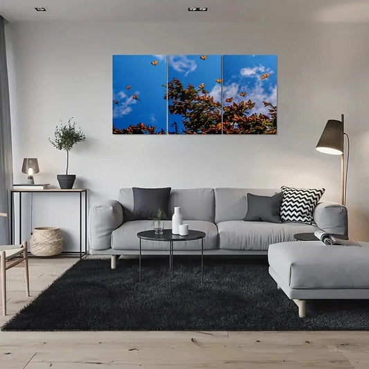 3pcs Vibrant Blue Sky & Orange Butterflies Metal Print Ready to Hang Art