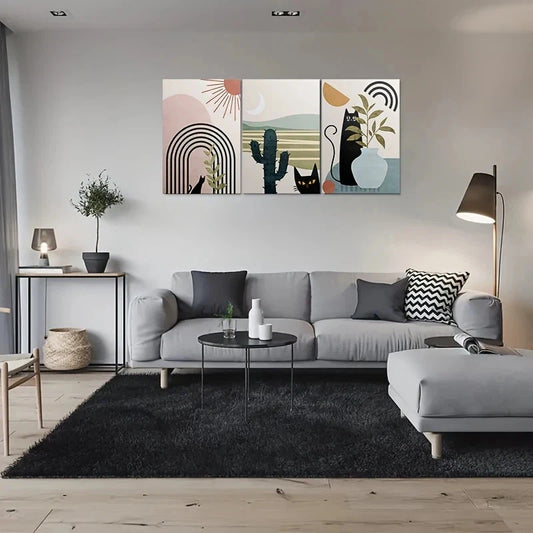 3pcs Rainbow Cactus & Plant Motifs Metal Print Ready to Hang Art
