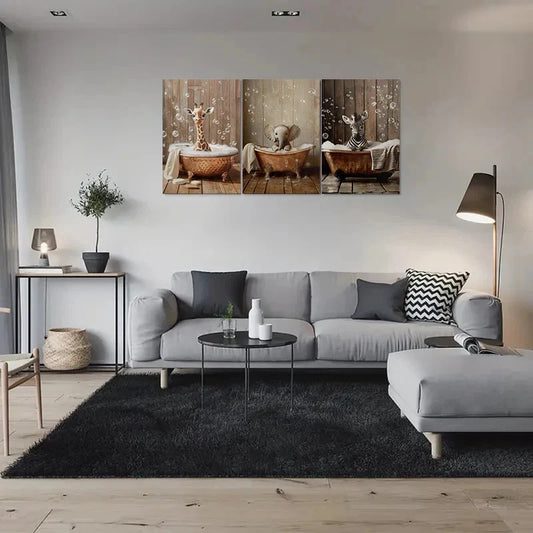 3pcs Adorable Animal Bath Time Metal Print Ready to Hang Art