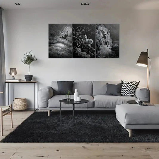 3pcs Dark Fantasy Gothic Devil Riding Horse Metal Print Ready to Hang Art