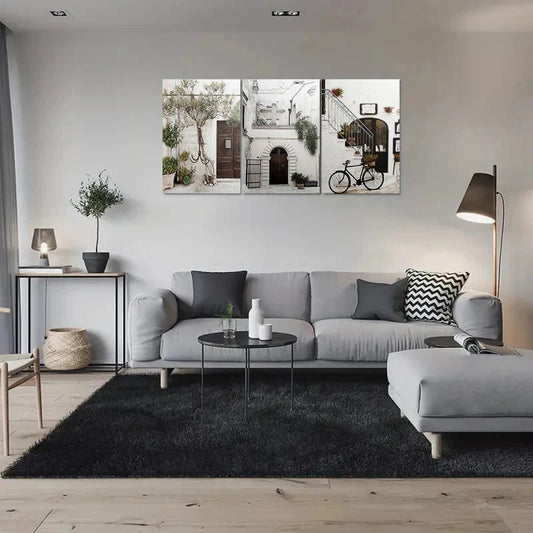 3pcs Vintage European Street Scene Bicycle Metal Print Ready to Hang Art