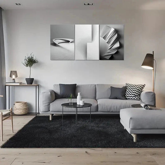 3pcs Modern Abstract Black & White Metal Print Ready to Hang Art