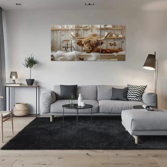 3pcs Highland Cow Relaxing in Bubble Bath Metal Print Ready to Hang Art