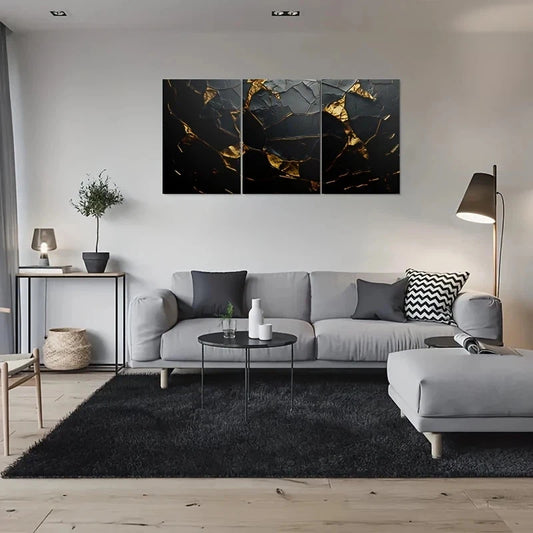 3pcs Modern Abstract Black & Golden Metal Print Ready to Hang Art
