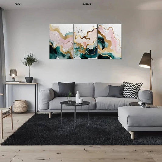 3pcs Golden Elegance Abstract Metal Print Ready to Hang Art