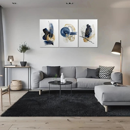3pcs Abstract Blue and Golden Themed Metal Print Ready to Hang Art
