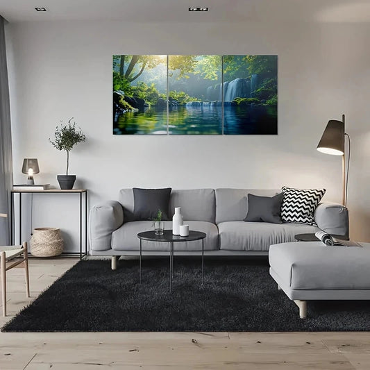 3pcs Waterfall Reflections in Greenery Metal Print Ready to Hang Art