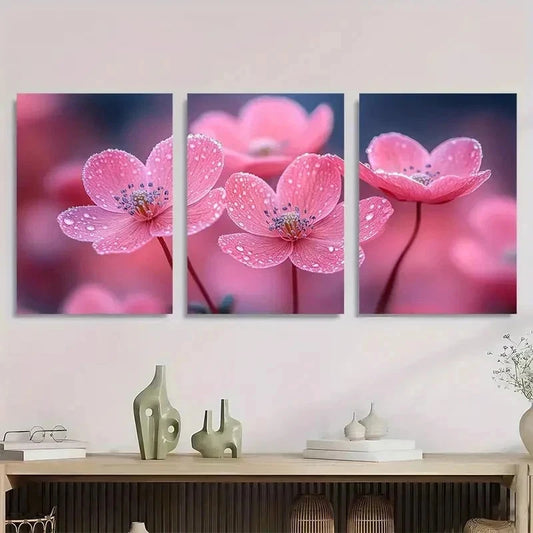 3pcs Elegant Pink Flowers On Dark Perfect Wall Art Set Canvas Framed 40x60cm - High Quality Print 100% Australian Made Wall Canvas Ready to Hang