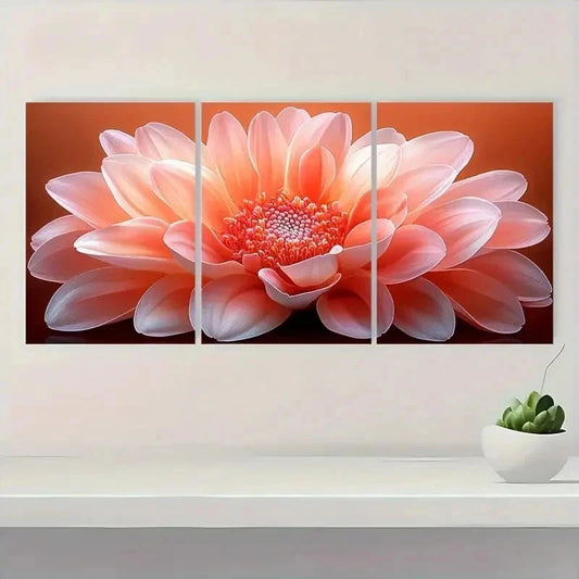 3pcs Chinese Aster Flower Aesthetic Perfect Wall Art Set Canvas Framed 40x60cm - High Quality Print 100% Australian Made Wall Canvas Ready to Hang