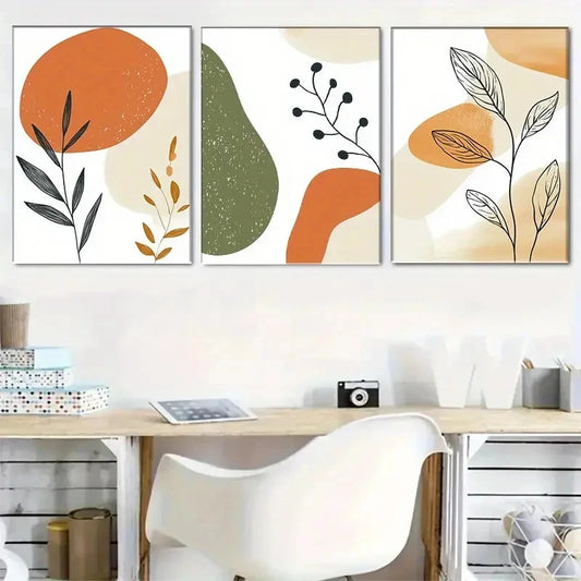 3pcs Geometric and Plant Art Set Print Metal Print Ready to Hang Art