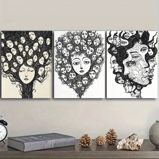 3pcs Lines Make Up The Face Black & White Metal Print Ready to Hang Art
