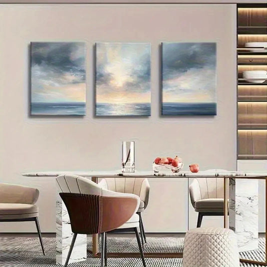 3pcs Ocean Sunset Soft Sky & Landmark Design Metal Print Ready to Hang Art
