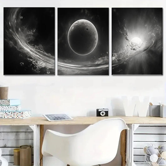3pcs Celestial Wonders Black & White Abstract Metal Print Ready to Hang Art