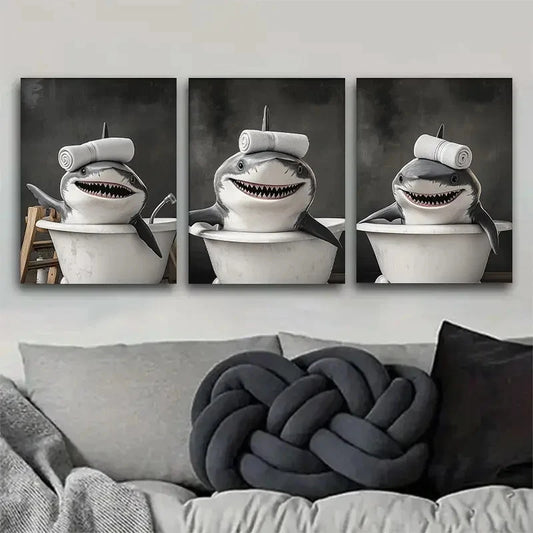 3pcs Shark Bath Three-Panel Painting Metal Print Ready to Hang Art