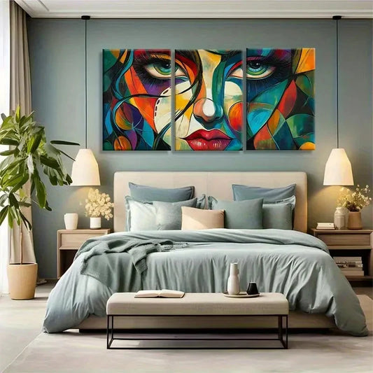 3pcs Vibrant Abstract Face Portraits Metal Print Ready to Hang Art