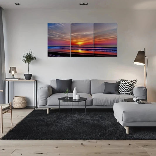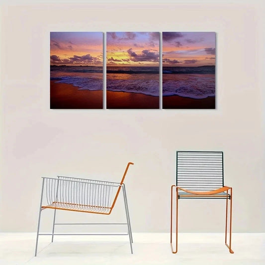 3pcs Sunset Beach Scene Ocean Waves & Sky Metal Print Ready to Hang Art