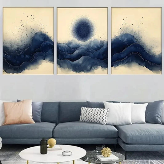 3pcs Abstract Blue Mountain Wave Style Metal Print Ready to Hang Art