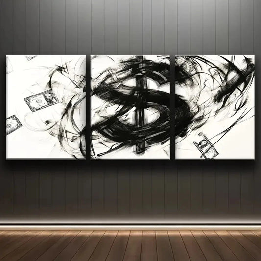 3pcs Modern Abstract Dollar Symbol and Money Metal Print Ready to Hang Art